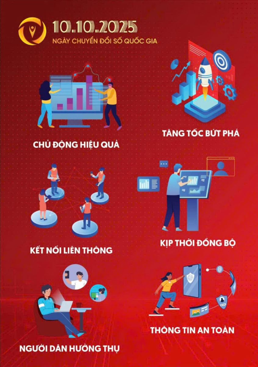 - Khuyến khích cán bộ, công chức, viên chức và người lao động của cơ quan, địa phương hưởng ứng trên không gian mạng bằng cách thay ảnh đại diện có kèm khung hình nhận diện Ngày Chuyển đổi số quốc gia 10.10.2025 tại đường dẫn: https://khunghinh.net/p/httpskhunghinhnetpCDDS1010