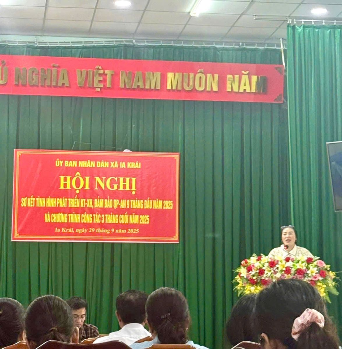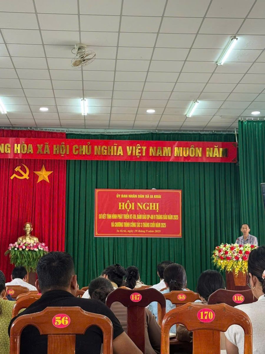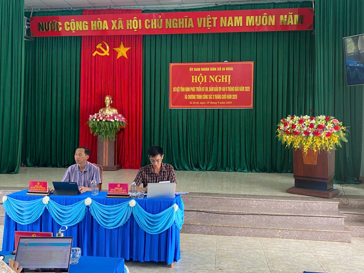 Chiều ngày 29/9/2025, tại Hội trường UBND xã Ia Krái đã diễn ra Hội nghị sơ kết tình hình thực hiện nhiệm vụ công tác 9 tháng đầu năm và triển khai chương trình công tác 3 tháng cuối năm 2025.