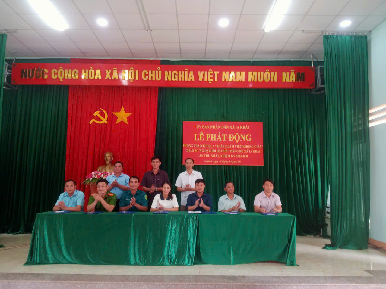 Chiều ngày 18//8/2025 Hòa chung không khí phấn khởi, tin tưởng và quyết tâm thi đua lập thành tích chào mừng Đại hội Đảng bộ xã Ia Krái lần thứ Nhất, nhiệm kỳ 2025-2030. UBND xã Ia Krái tổ chức Lễ phát động phong trào thi đua “Tháng làm việc không giấy”. Đây là hoạt động thiết thực nhằm cụ thể hóa mục tiêu chuyển đổi số – cải cách hành chính – xây dựng chính quyền hiện đại, đồng thời là món quà ý nghĩa dâng lên Đại hội Đảng bộ xã.